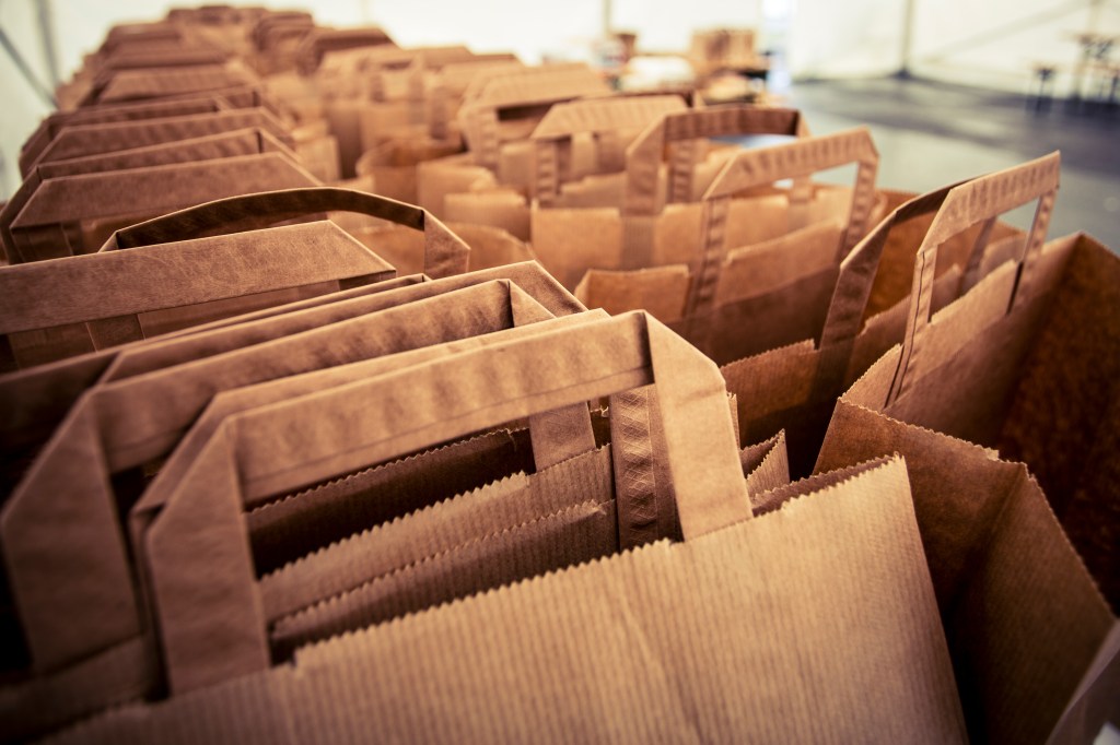 - Purchase or solicit donations of bags or boxes for shoppers to take home. Consider what shapes and strength are necessary based on your food supply and shopper needs. For example, paper bags are awful on rainy days, and large boxes of canned goods may be impossible for some shoppers to carry.
